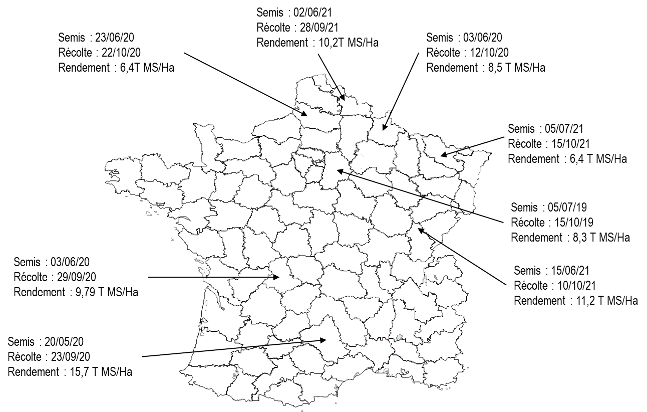 Sur la carte ci-dessous, vous pouvez retrouver des résultats d’essais de ces 2 dernières années sur RGT ESTIMAX METHA.